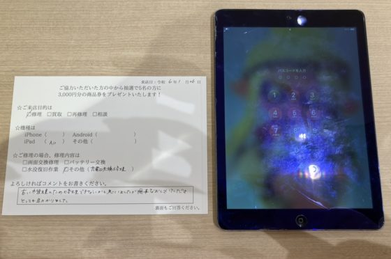 【お客様の声】大阪市よりお越しのお客様のiPadAirの充電口の交換をしました!