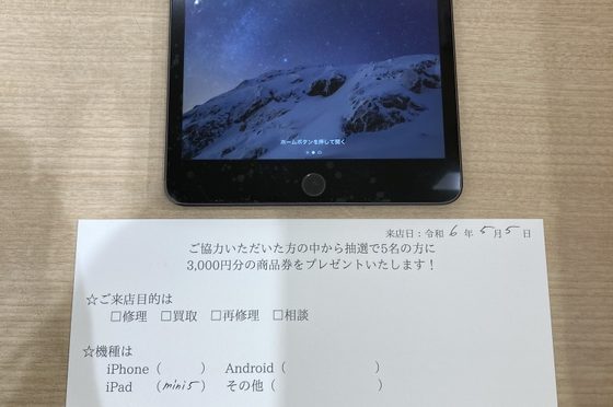 【お客様の声】大阪市よりお越しのお客様のiPadmini5の画面交換修理をしました!