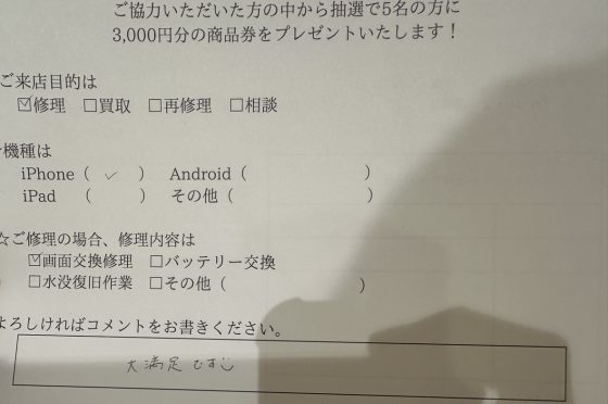 弊社の修理サービスをご利用いただいきましたお客様の声です。