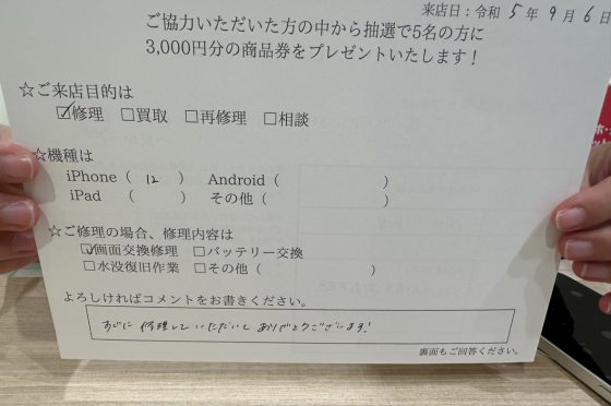 【お客様の声】尼崎市からお越しのお客様のiPhone12の画面交換をしました!