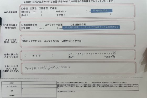 弊社の修理サービスをご利用いただいきましたお客様の声です。