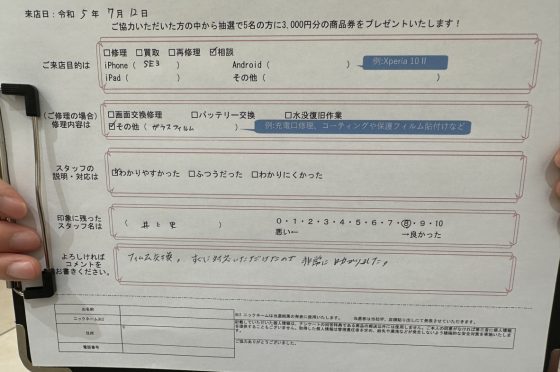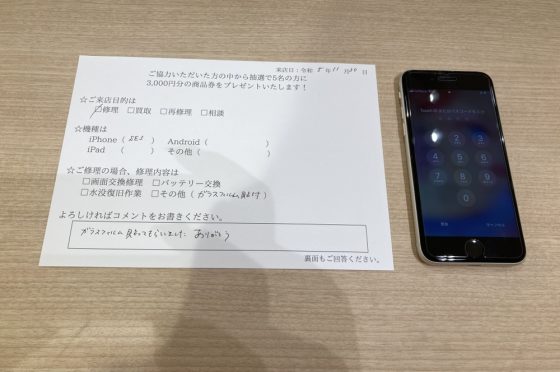 【お客様の声】iPhone SE3 ガラスフィルムをお貼りさせていただきました!