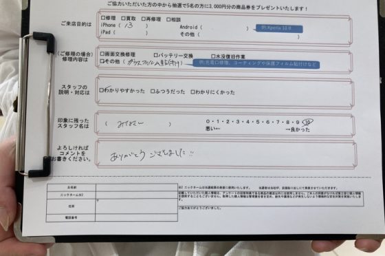 【お客様の声】ガラスフィルムの貼り換えをさせていただきました!
