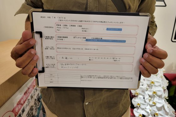 弊社の修理サービスをご利用いただいきましたお客様の声です。
