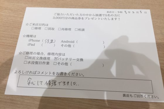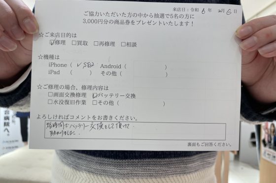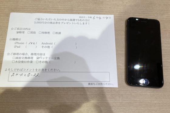 【お客様の声】iPhoneSE2バッテリー交換をしました!
