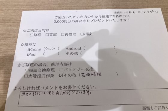弊社の修理サービスをご利用いただいきましたお客様の声です。