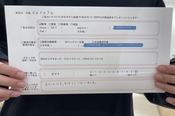 【お客様の声】iPhoneSE2バッテリー交換をしました。