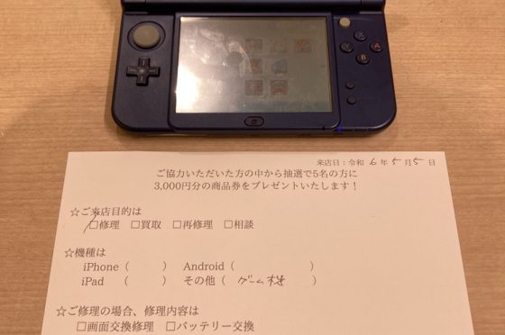 【お客様の声】大阪市よりお越しのお客様のNew3DSLLの十字基板交換修理をしました!