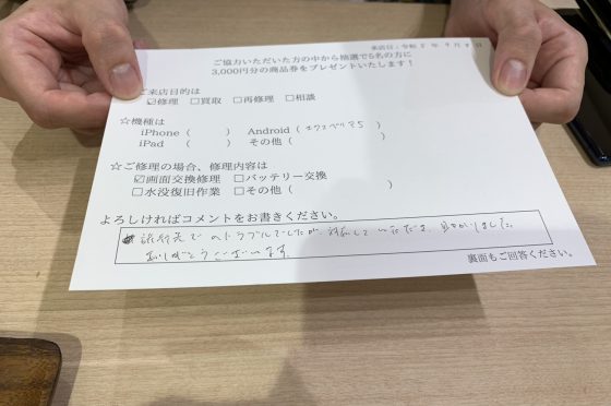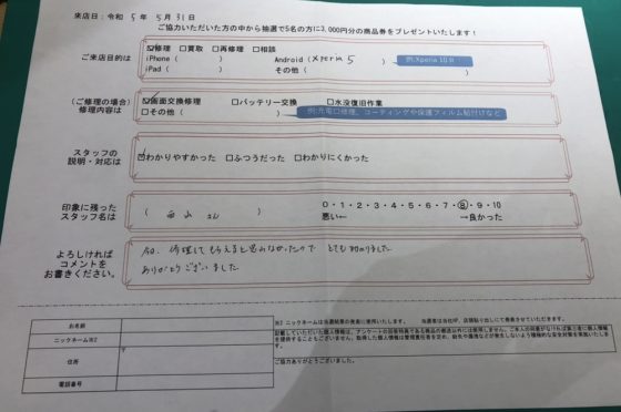 弊社の修理サービスをご利用いただいきましたお客様の声です。