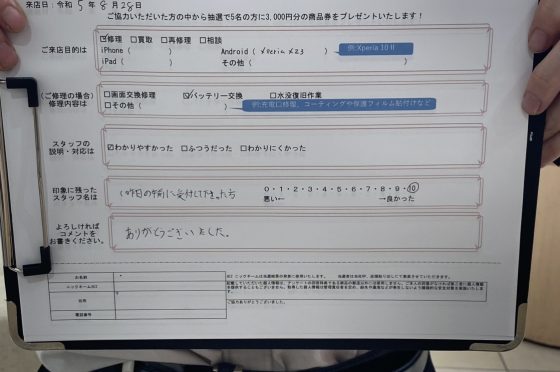 【お客様の声】XpreiaXZ3のバッテリー交換をさせていただきました!!!