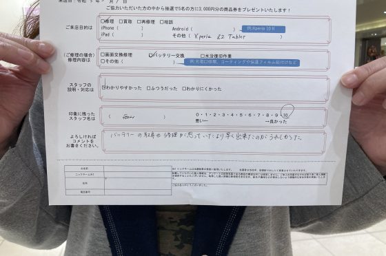 【お客様の声】Xperia Z2 Tabletのバッテリー交換をしました!