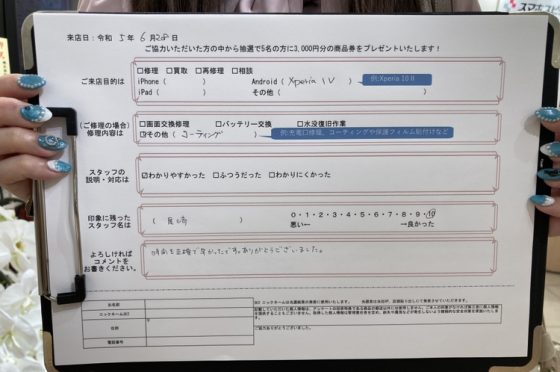 弊社の修理サービスをご利用いただいきましたお客様の声です。
