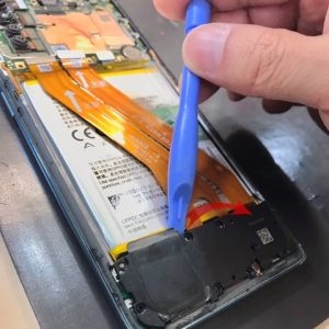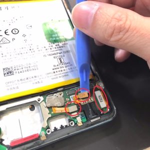 充電口ケーブルは接着されているのでゆっくりと手で取り外します