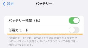 低電力モードをオンにすることで、バックグラウンドでの動作を一時的に抑えることができます。