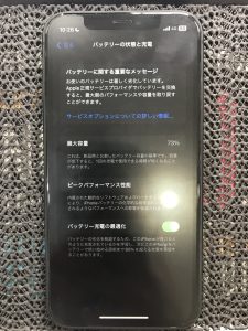 バッテリー最大容量は73%と弱ってきている状態でございました。