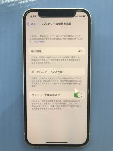 iPhoneのバッテリー交換の目安は【80%】なので少し弱ってきている状態ですね