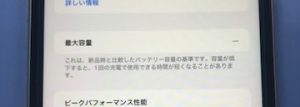 バッテリーの最大容量が【77%】になっていますねバッテリー交換の目安は【80%】なので少し弱ってきている状態です。