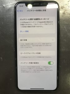 最大容量の表示は出なくなりましたが、充電の増え方などチェックさせていただき無事修理完了です✨