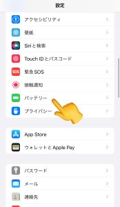 設定を開いて、バッテリーを押す。
