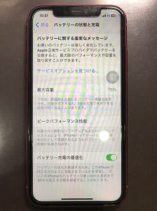バッテリー最大容量が78%と少し弱っている状態でした。