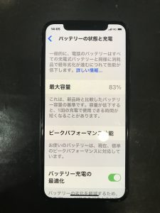 バッテリーの劣化具合としても最大容量が83%と、使い方によってはこれから不具合もでる可能性があります。