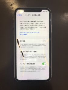 今回の端末は60%ですので、かなりバッテリーが劣化していることが分かります。