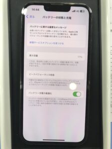 充電のもちが悪くなっているとのことで、バッテリーの最大容量は 77% となっています