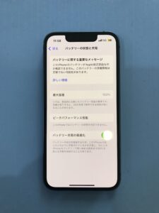 新品のバッテリーへと交換完了でございます。(OSや機種によっては最大容量の表示がなくなる可能性あり)