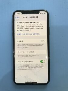 バッテリーの最大容量を拝見させていただくと73%でかなり弱っている状態。