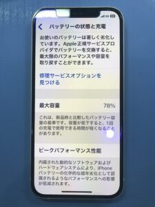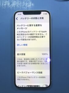 バッテリー最大容量も100%表示に切り替わっており修理完了となりました。