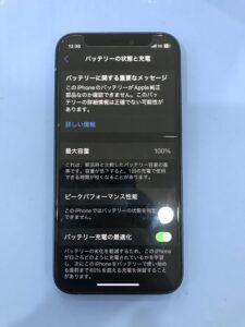 このように100パーセント表記となり、充電の溜まり具合や減り具合も問題ない状態でのご返却となりました。