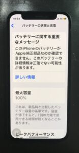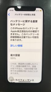 最大容量表示は99%ですが、前回バッテリー交換されてから2年ほど経っており、減りも早くなっているとのことでした