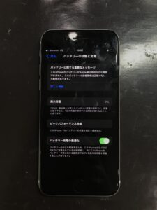 最大容量(バッテリーの劣化具合を表す数値)を確認しても0%の表示になっており、