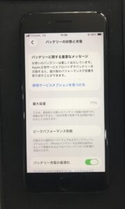 バッテリーの最大容量は77%。