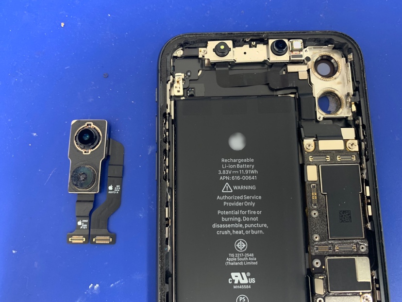 こちらのiPhone11も割れたレンズガラスが落ちて、内部のカメラが見えてしまっています。