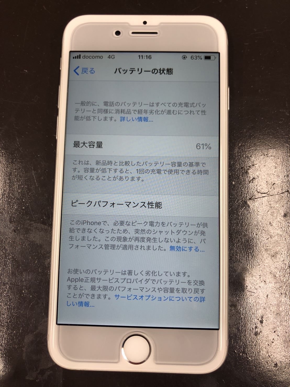 交換前のバッテリーは最大容量61%