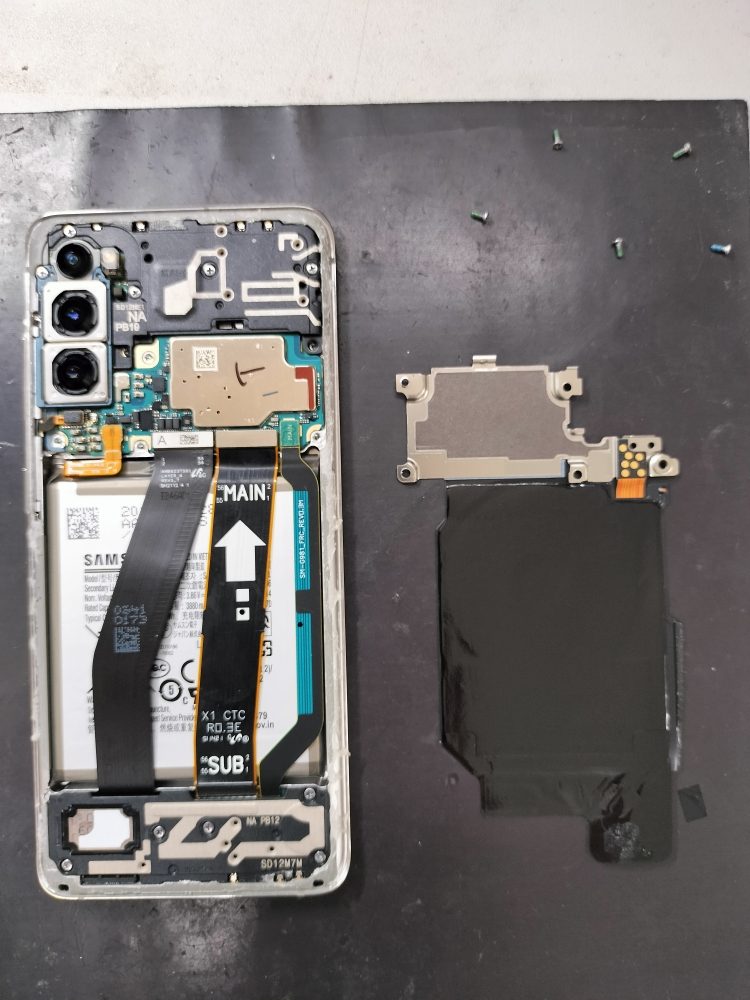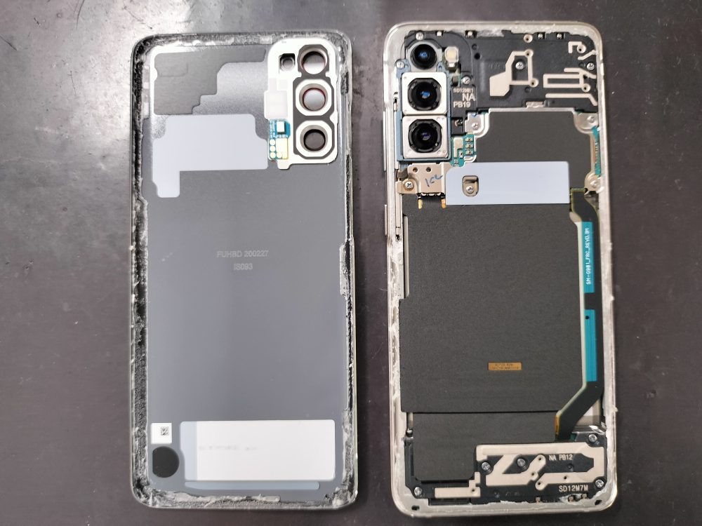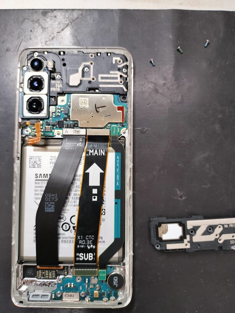 GalaxyS20は背面パネルから分解していきます。