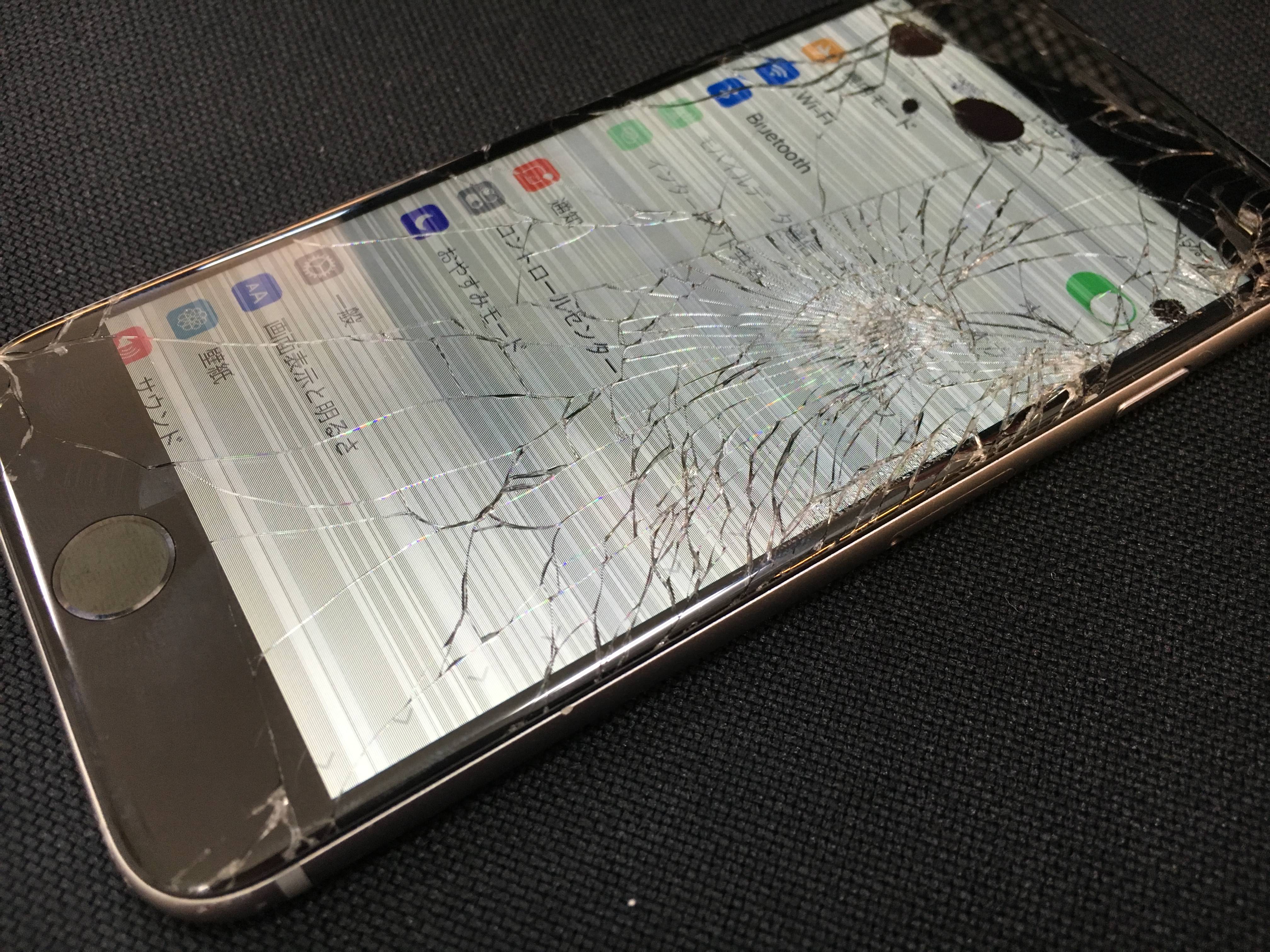 【即日修理】iPhone6sの画面割れ、液晶が砂嵐のような表示に