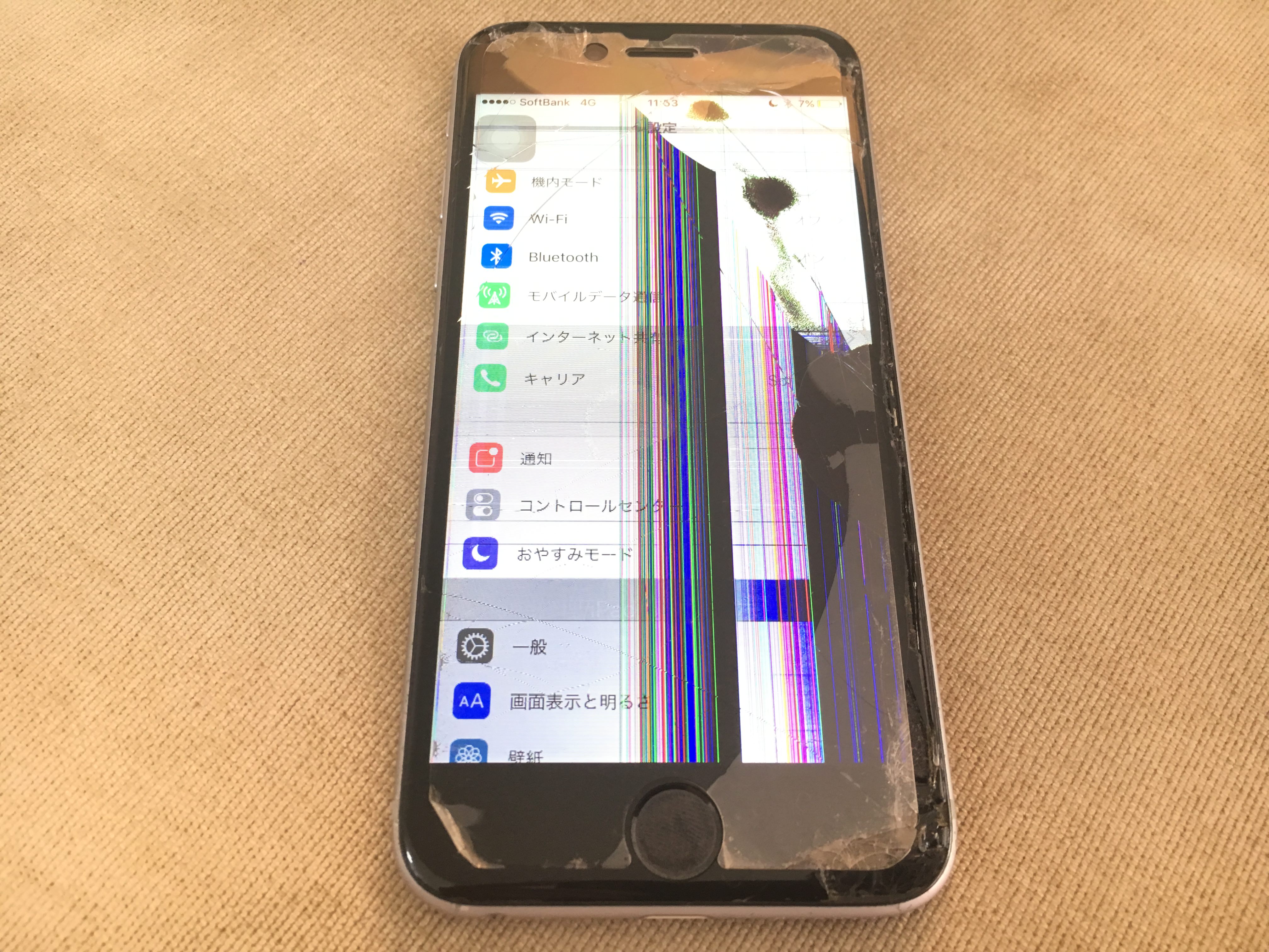 本日ご依頼を頂いたiphone6sの画面は、まるでホラー映画のような黒い線が