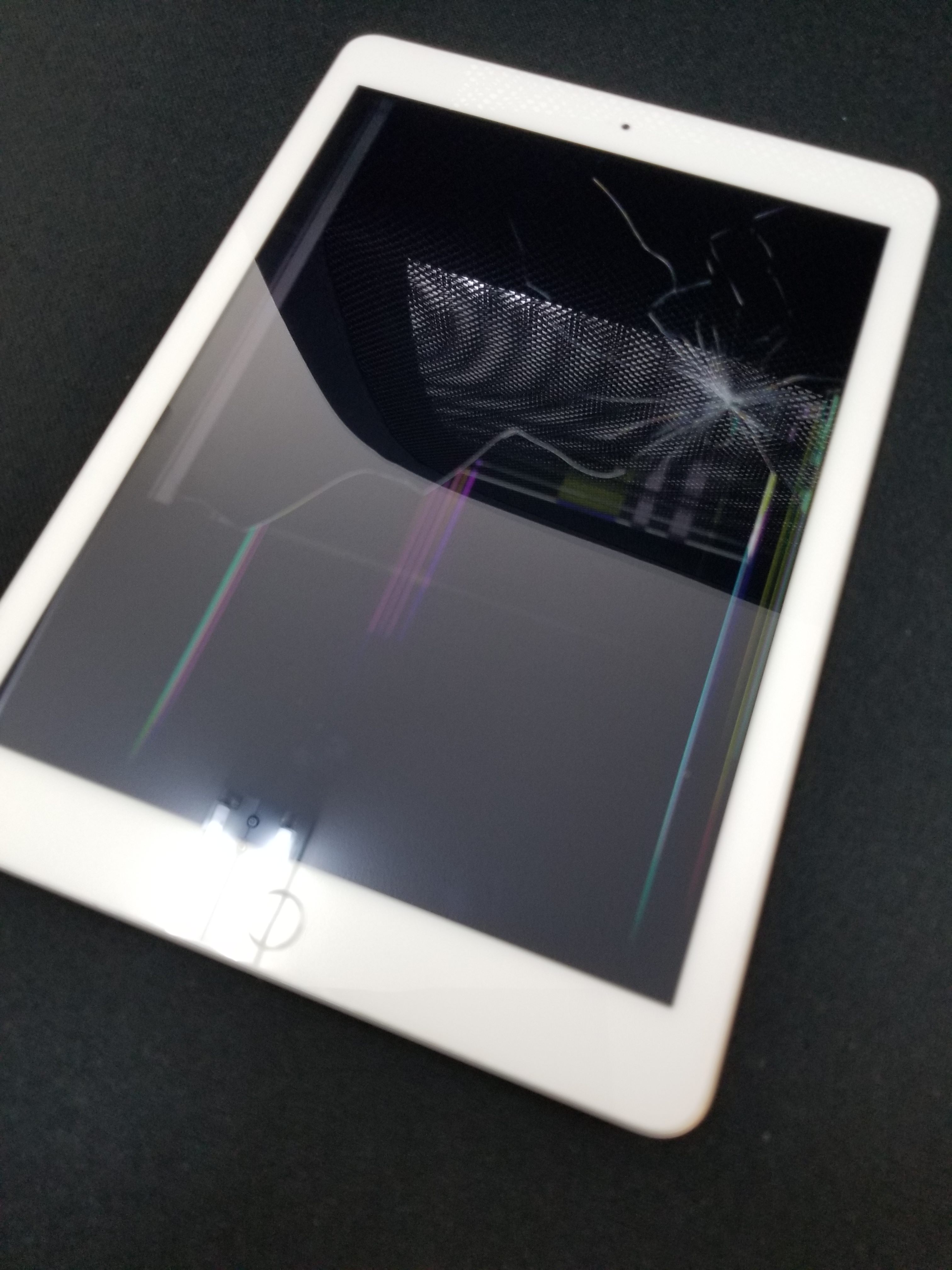 今回はこのように中の液晶部分のみにひびが入ってしまっているiPad第5世代の修理を行いました。