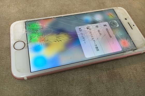 【即日修理】iPhone6sの画面割れ、液晶が砂嵐のような表示に