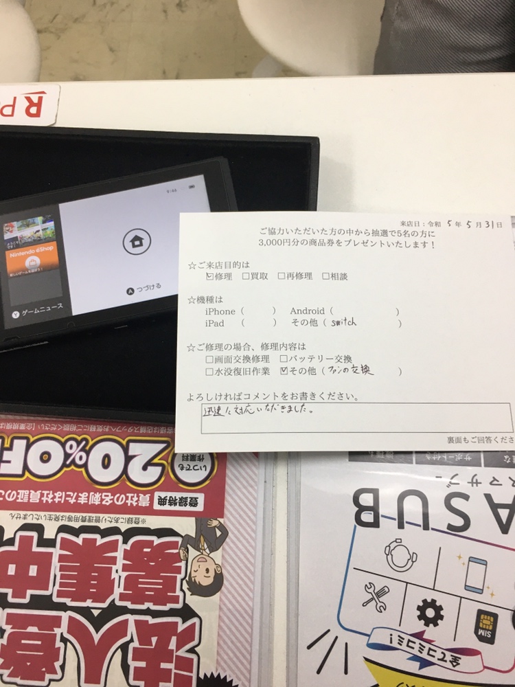 スマホスピタル藤沢 Switchの冷却ファンを交換致しました!