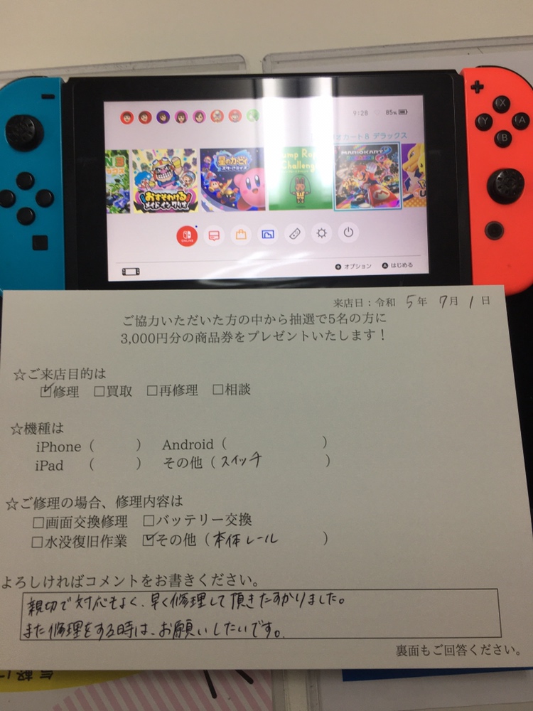 スマホスピタル藤沢 Switchの本体レールを交換致しました!!!