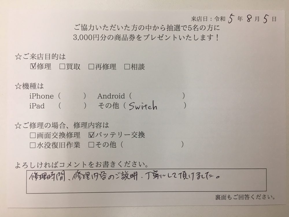修理時間、修理内容のご説明を丁寧にして頂けました!