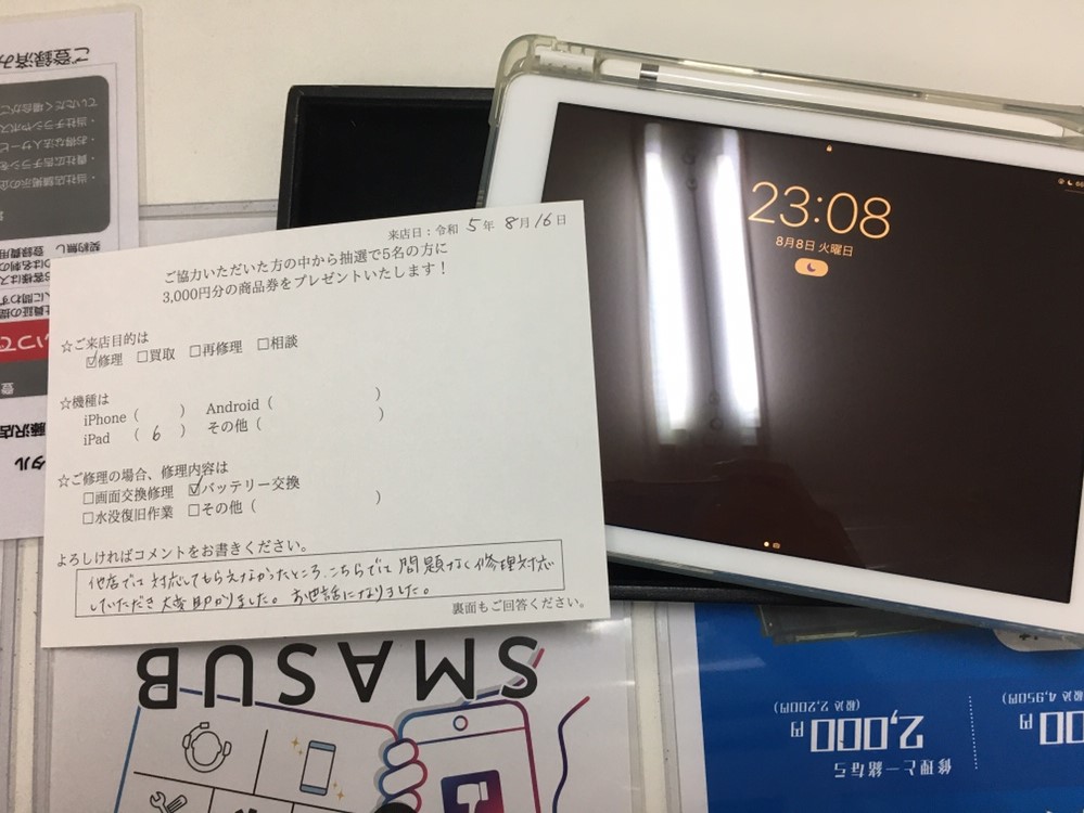 スマホスピタル藤沢 iPad6の充電口とバッテリー交換致しました!