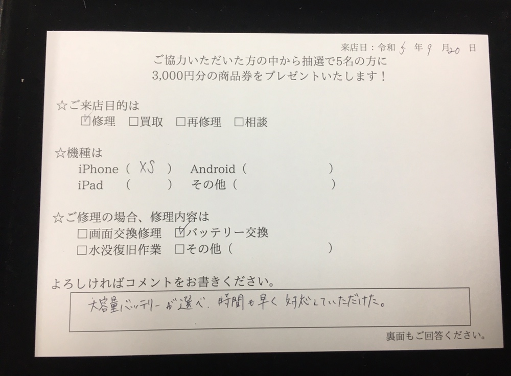 スマホスピタル藤沢 iPhoneXsのバッテリー交換致しました!