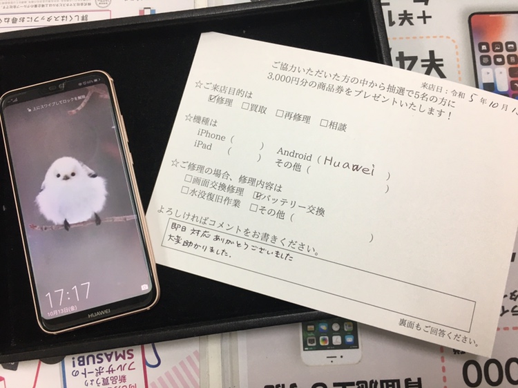 スマホスピタル藤沢 HUAWEIP20liteのバッテリー交換致しました!