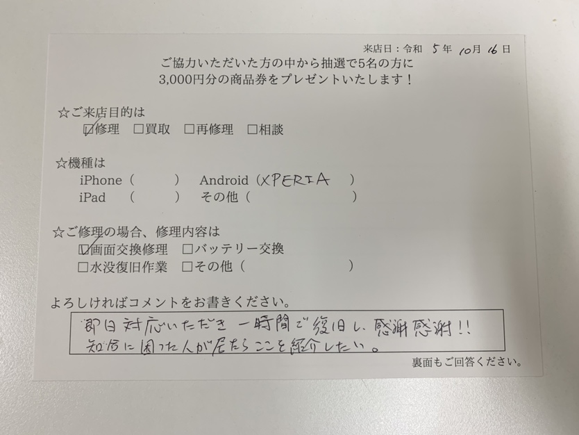 スマホスピタル藤沢 Xperia5 の画面を交換致しました!