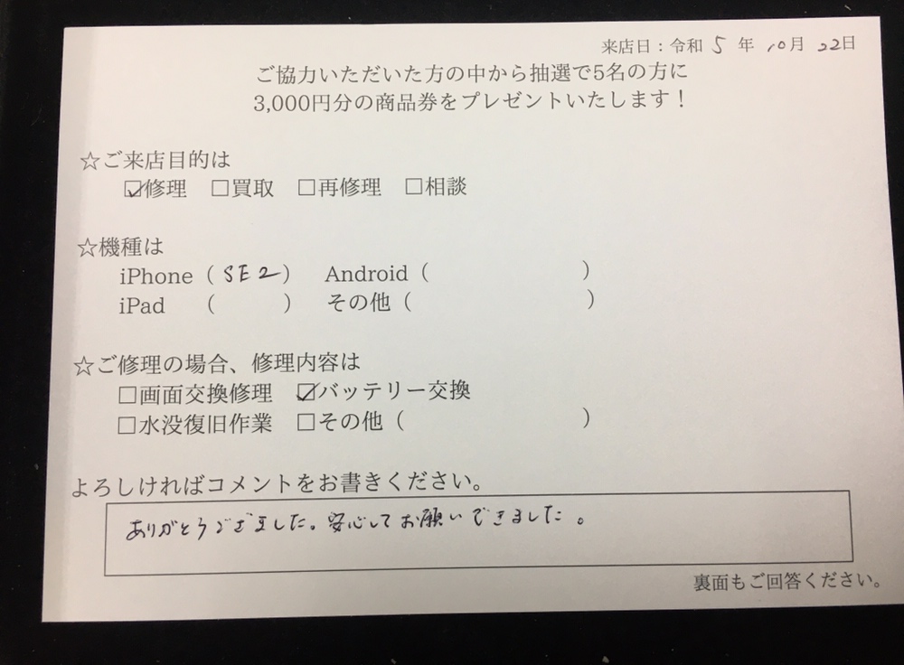 スマホスピタル藤沢 iPhoneSE2の大容量バッテリー交換致しました!