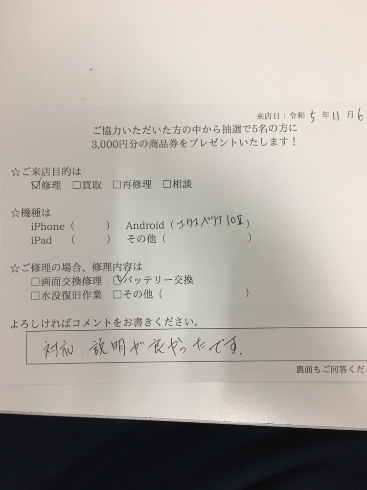 対応、説明が良かったです!